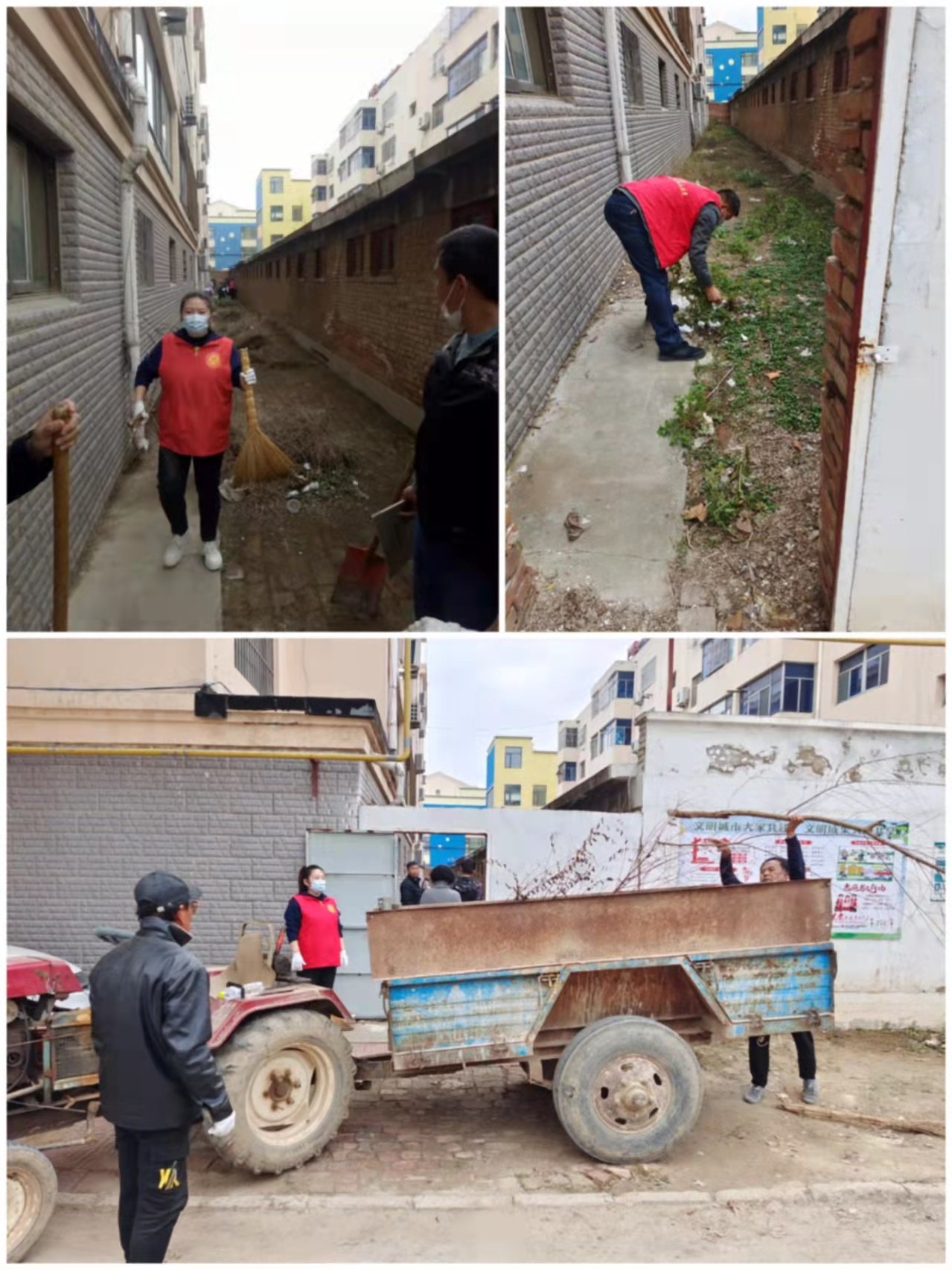花园小区一胡同杂物、垃圾堆积如山,苍蝇蚊虫肆虐,给社区居住环境造成了恶劣影响。得知这一情况后,武城分公司组织党员先锋队立即行动,全体党员充分发挥不怕苦、不怕累的作风,拔除杂草清扫垃圾搬运杂物,不到2个小时,就将这个“脏、乱、差”的难点胡同清理的干干净净,切实为居民解决了“老大难”问题,给居民营造了一个干净、整洁的生活环境,也以实际行动增强了居民爱护环境、保护社区的意识,受到居民的赞誉。在开展志愿服务活动的同时,党员们还积极向小区居民介绍了享TV 、军人事务平台、玖玖医养等业务,为保户增收、冲刺四季度带好头,做表率。